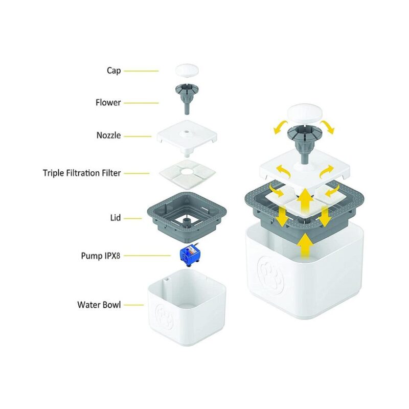 Κατασκευασμένο από φιλικό προς το περιβάλλον πλαστικό PP, ανθεκτικό και εύκολο στο καθάρισμα, το οποίο επίσης εμποδίζει την ανάπτυξη των μικροβίων, παρέχει στη γάτα ή τον σκύλο σας φιλτραρισμένο φρέσκο νερό.