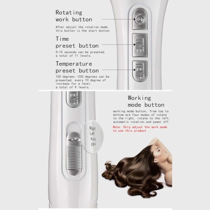 Το αυτόματο ρόλεϊ μαλλιών με ρυθμιζόμενη θερμοκρασία, υπέρυθρη θέρμανση και περιστρεφόμενο ραβδί έχει δυνατότητα: