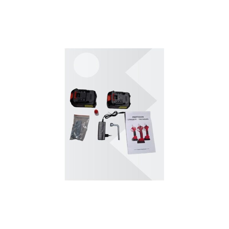 Το κλαδευτήρι συνοδεύεται από ανθεκτική βαλίτσα μεταφοράς, επιπλέον αξεσουάρ και εφεδρική μπαταρία, καθιστώντας το ιδανικό εργαλείο για επαγγελματίες γεωργούς, αμπελουργούς,