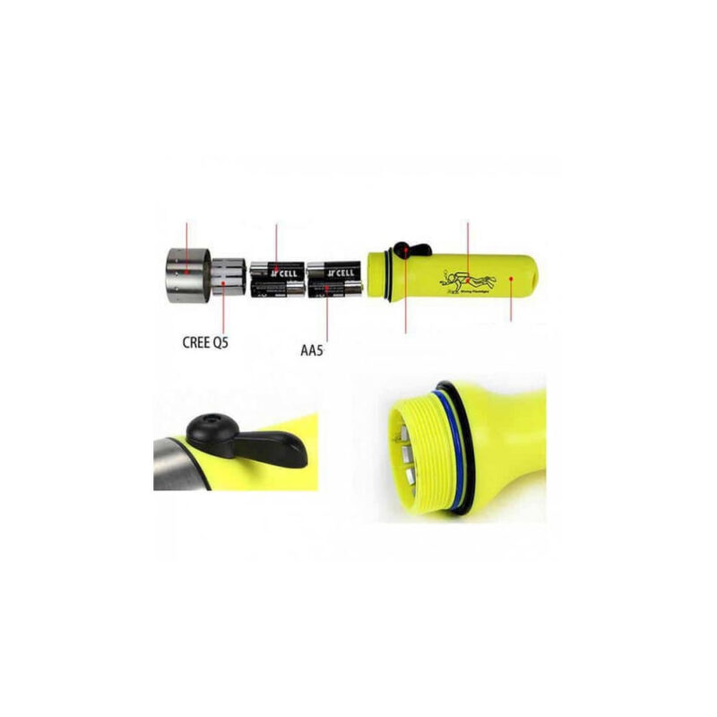 Ο φακός τροφοδοτείται από δυο επαναφορτιζόμενες μπαταρίες Li-ion 18650 ή μπαταρίες ΑΑ