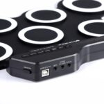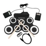 Φορητό ψηφιακό σετ τυμπάνων σιλικόνης με 2 στικ, 2 πεντάλ και προσομοίωση κρουστών. Εύκολη μεταφορά και αποθήκευση. Ιδανικό για εξάσκηση αρχαρίων ή πάρτι.