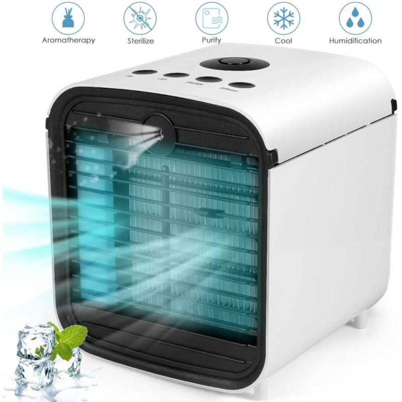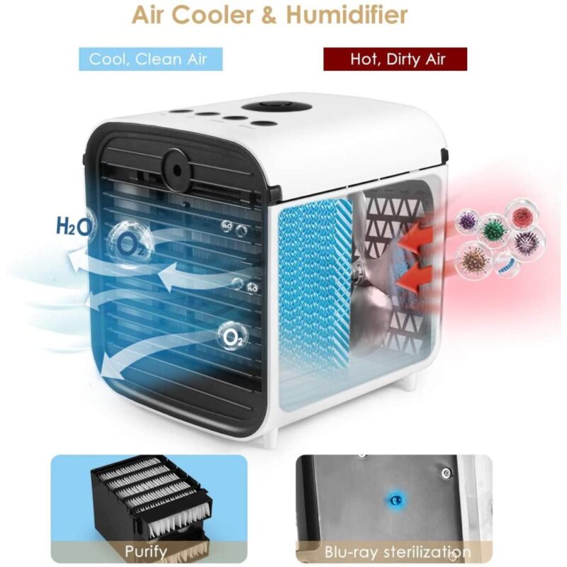 Πρόκειται για ένα φορητό κλιματιστικό το οποίο διαθέτει 3 λειτουργίες: δροσίζει, διατηρεί την υγρασία και καθαρίζει τον αέρα που περνά από μέσα του, με την βοήθεια του ενσωματωμένου φίλτρου που διαθέτει.
