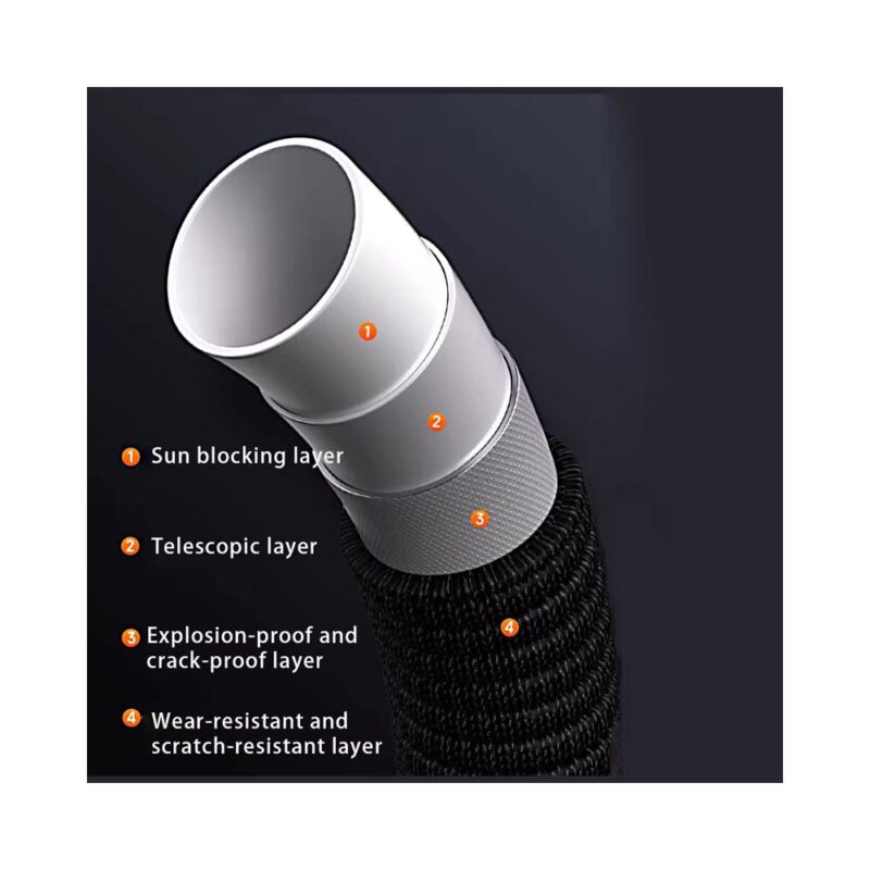 Το επεκτεινόμενο λάστιχο 30 μέτρων εξοικονομεί χώρο και επεκτείνεται αυτόματα έως και 3 φορές από το αρχικό του μέγεθος μόλις ανοίξει το νερό. Στη συνέχεια, μαζεύει και επιστρέφει στο αρχικό του μέγεθος όταν κλείσει το νερό, διευκολύνοντας τη αποθήκευσή του. Είναι κατασκευασμένο από ανθεκτικό υλικό, ανθεκτικό σε μεγάλες πιέσεις νερού και δεν μπερδεύεται. Το ακροφύσιο νερού διαθέτει 7 διαφορετικά σχήματα ψεκασμού.Συνδέεται εύκολα σε κάθε βρύση και διαθέτει μεταλλικά βιδωτά ρακόρ για αυξημένη ανθεκτικότητα.