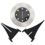 Σετ ηλιακά φωτιστικά κήπου LED, εδάφους, καρφωτά με ειδικό πάσσαλο μήκους 12 cm. Ιδανικά για διακοσμητικό φωτισμό του κήπου σας, με αποκλειστικά ηλιακή τροφοδοσία και πολύ εύκολη τοποθέτηση ασύρματα χωρίς καλώδια.