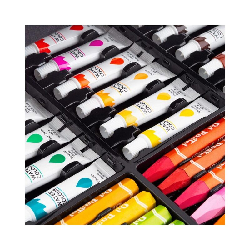 Το σετ περιλαμβάνει συνολικά 145 τεμάχια ζωγραφικής σε ένα πρακτικό βαλιτσάκι.