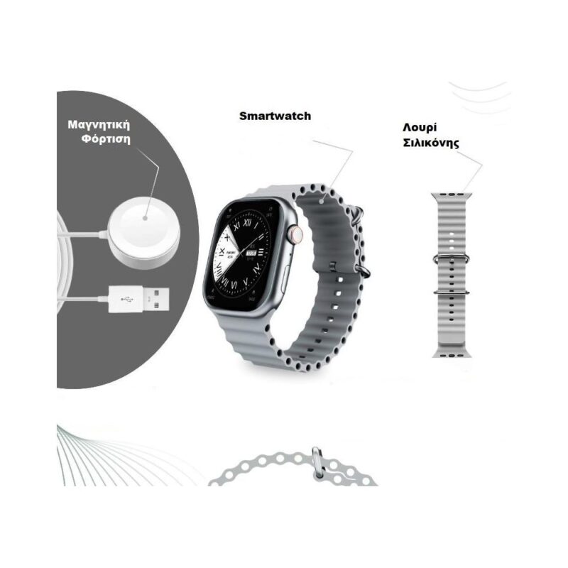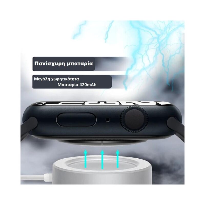 SmartWatch με ελληνικό μενού, NFC, ασύρματη φόρτιση (Μαύρο-Λευκό-Ρόζ)