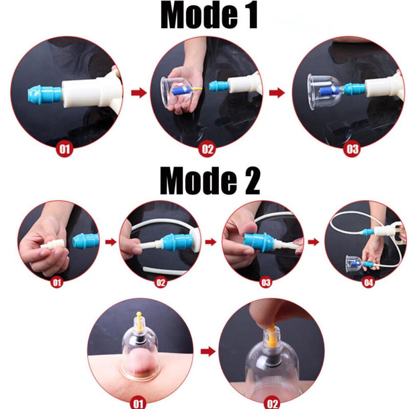 Μέσω της αντλίας αέρα απορροφάτε τον αέρα από τα ειδικά ποτήρια – σετ που συνοδεύουν το πακέτο και τα όποια διαθέτουν από μια βαλβίδα, έτσι ώστε να μην επιτρέπουν στον αέρα να εισέρθει μετά το βεντουζάρισμα.